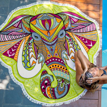 Fringed Round Mandala Beach Blanket – 150cm Cotton-Polyester